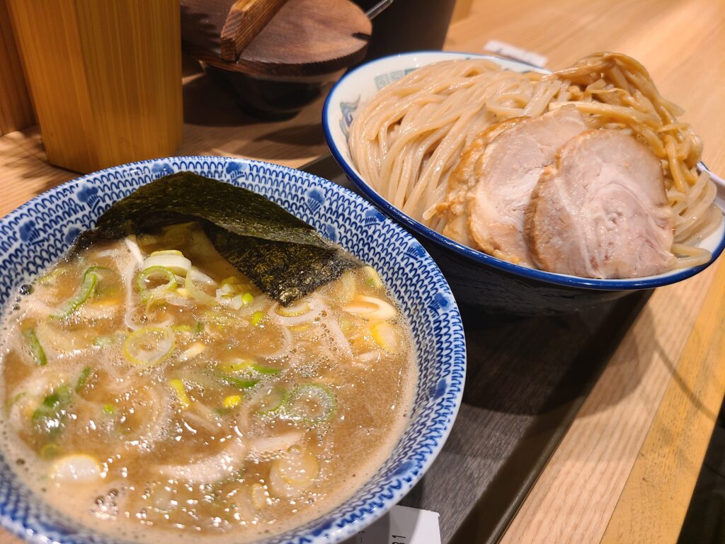 さてつけ麺、スープは塩気かなり強めですが関西ライズされているのか東の店舗より食べやすく感じます。これにガチガチ強固の麺がとても合っており、美味しいです。そして卓上の粉薬味「ゆず」「七味」「梅」がとても良い働きで、これを