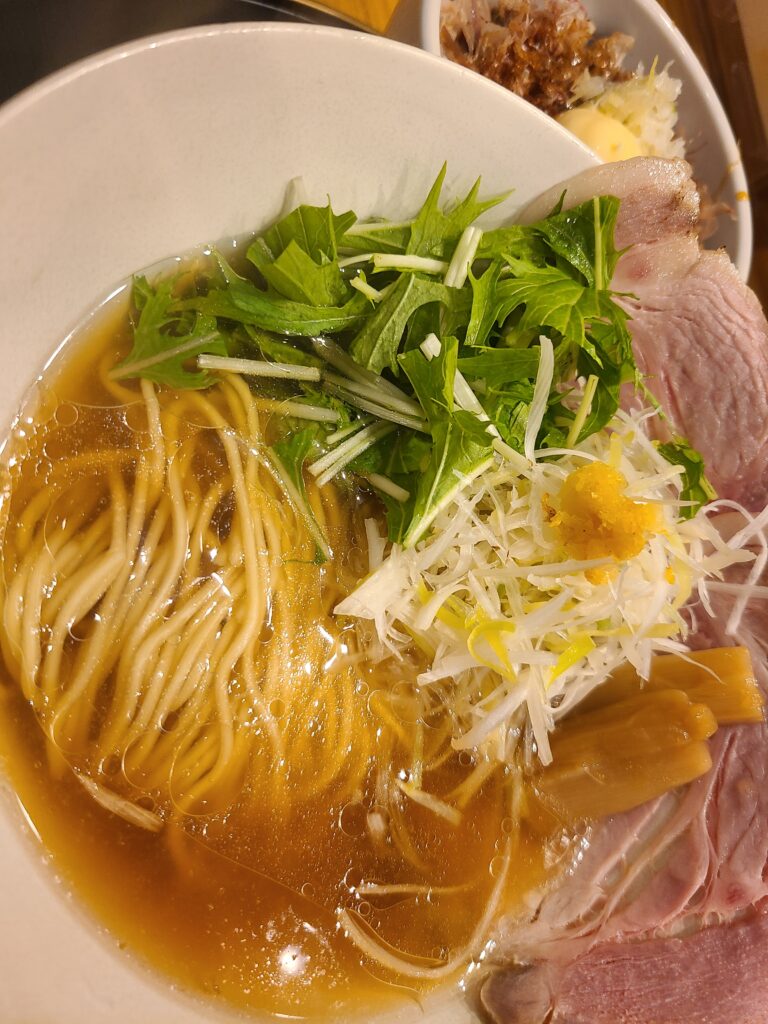 新ちゃんラーメン柚子醤油(1200円)とチャーマヨ丼(450円)を頂きました。